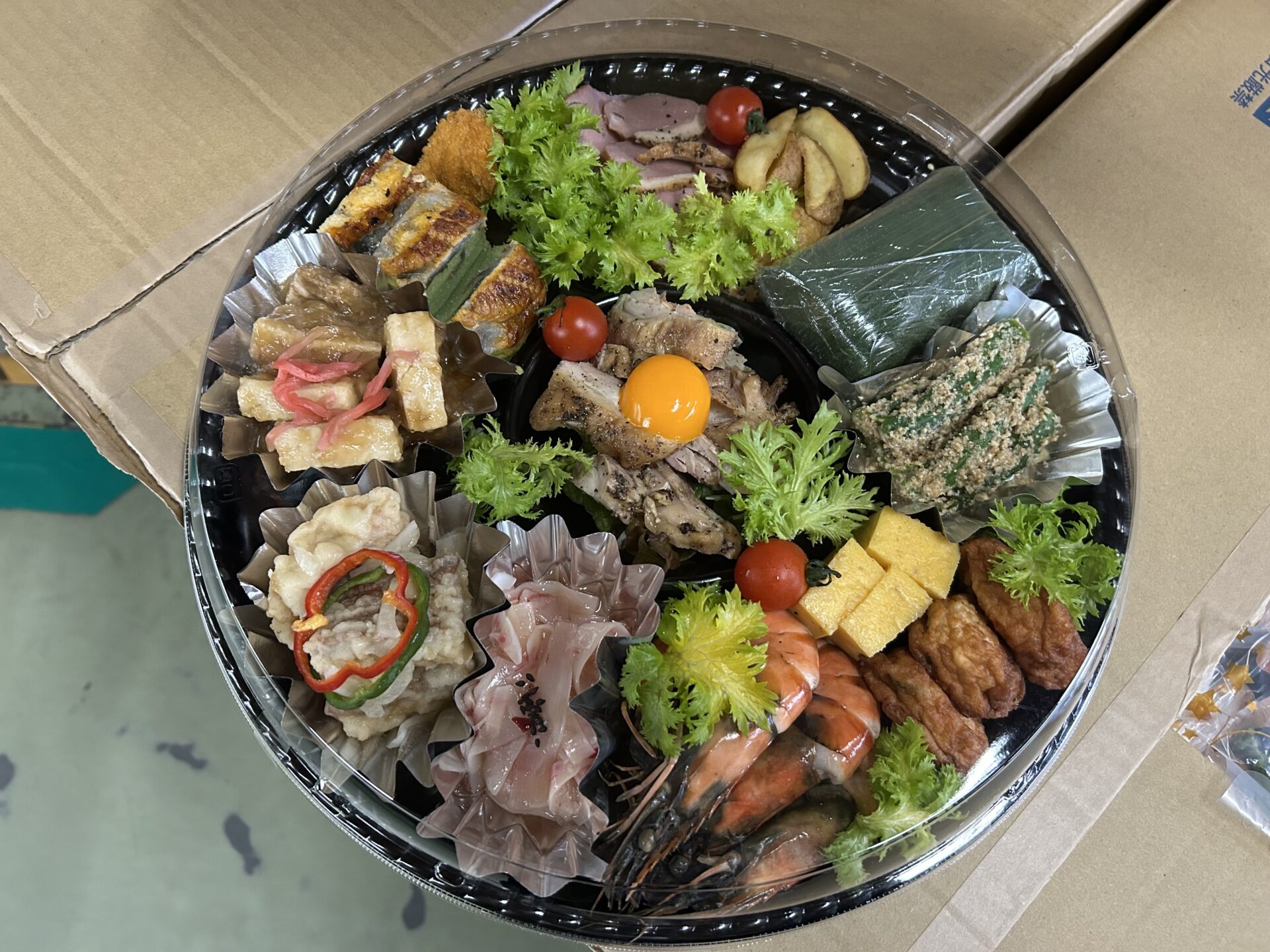 2025年12月24日、全社員にオードブルを配りました。